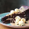 Tarta de chocolate cremosa con palomitas caramelizadas, toffee al punto de sal y galleta TostaRica.
